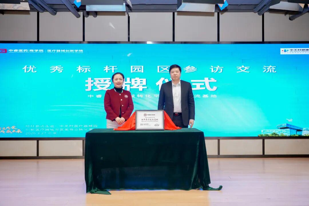 揭牌环节,中关村医疗器械园有限公司董事长何建涛与中睿医药商学院院长吴学东共同为“创新药械转化平台标杆参访交流基地”揭牌。该基地的设立,标志着双方合作迈入机制化、平台化的新阶段,构建了一个集标杆参访、技术交流、资源对接与成果转化为一体的常态化互动平台,为医械领域的创新项目与专业资本、市场资源搭建稳固桥梁。